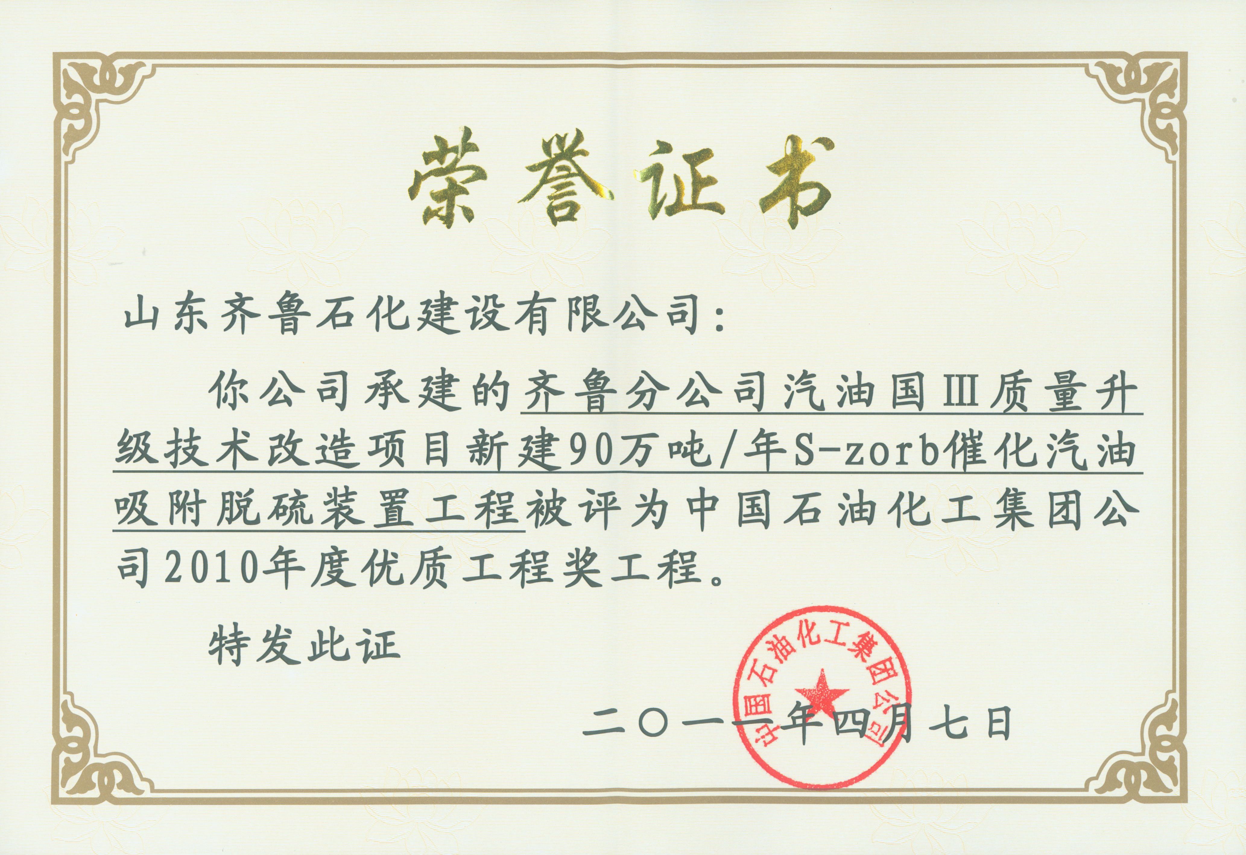 中石化優(yōu)質(zhì)工程-S-zorb催化汽油吸附脫硫裝置工程